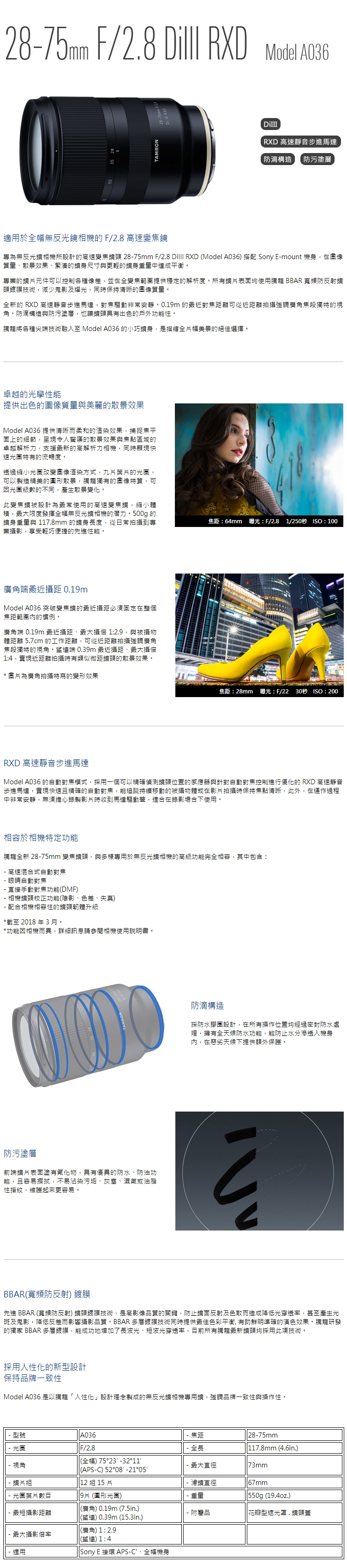 Tamron 28-75mm F2.8 Di III RXD A036 標準變焦鏡頭 For Sony E [福利品]